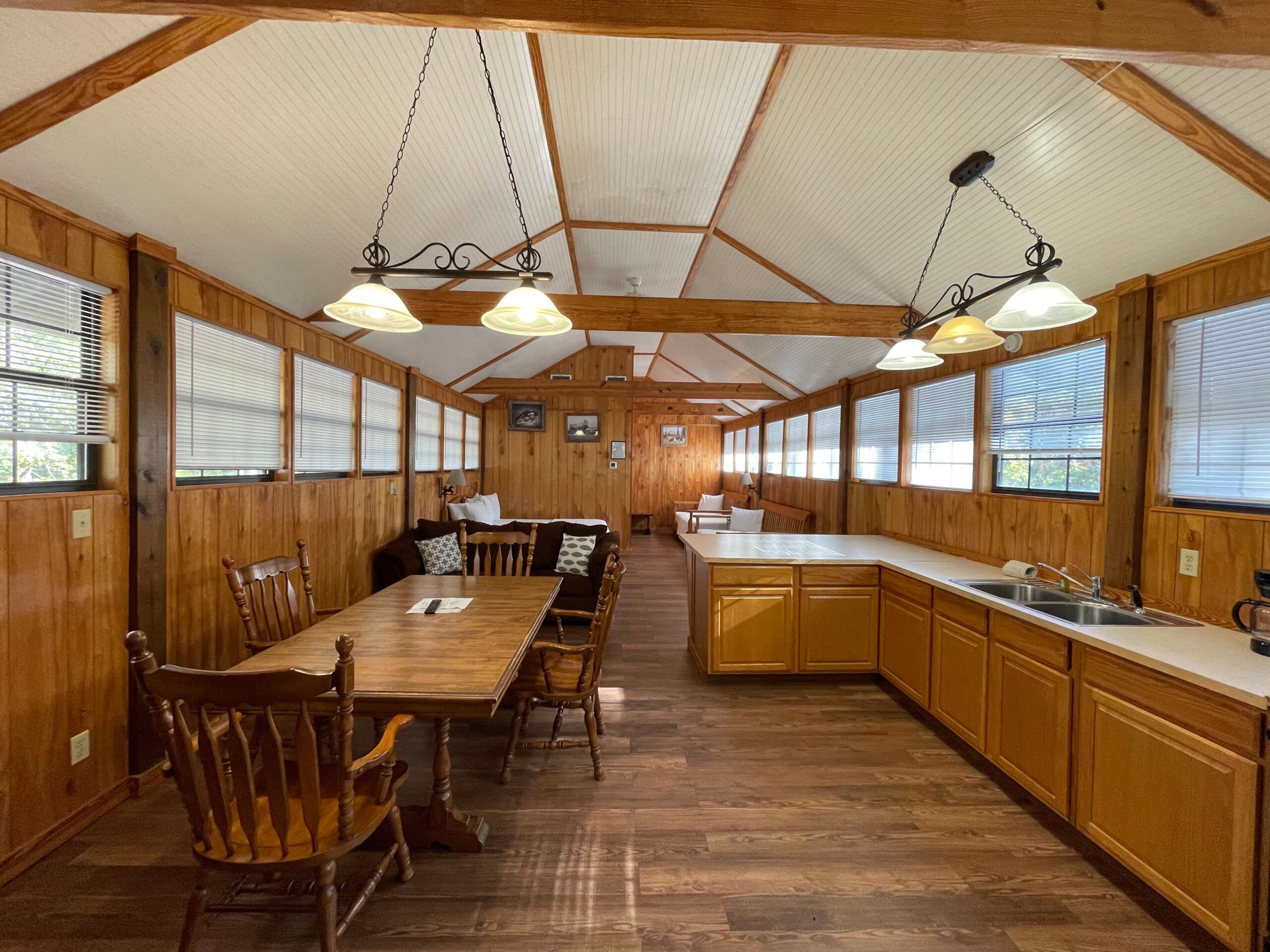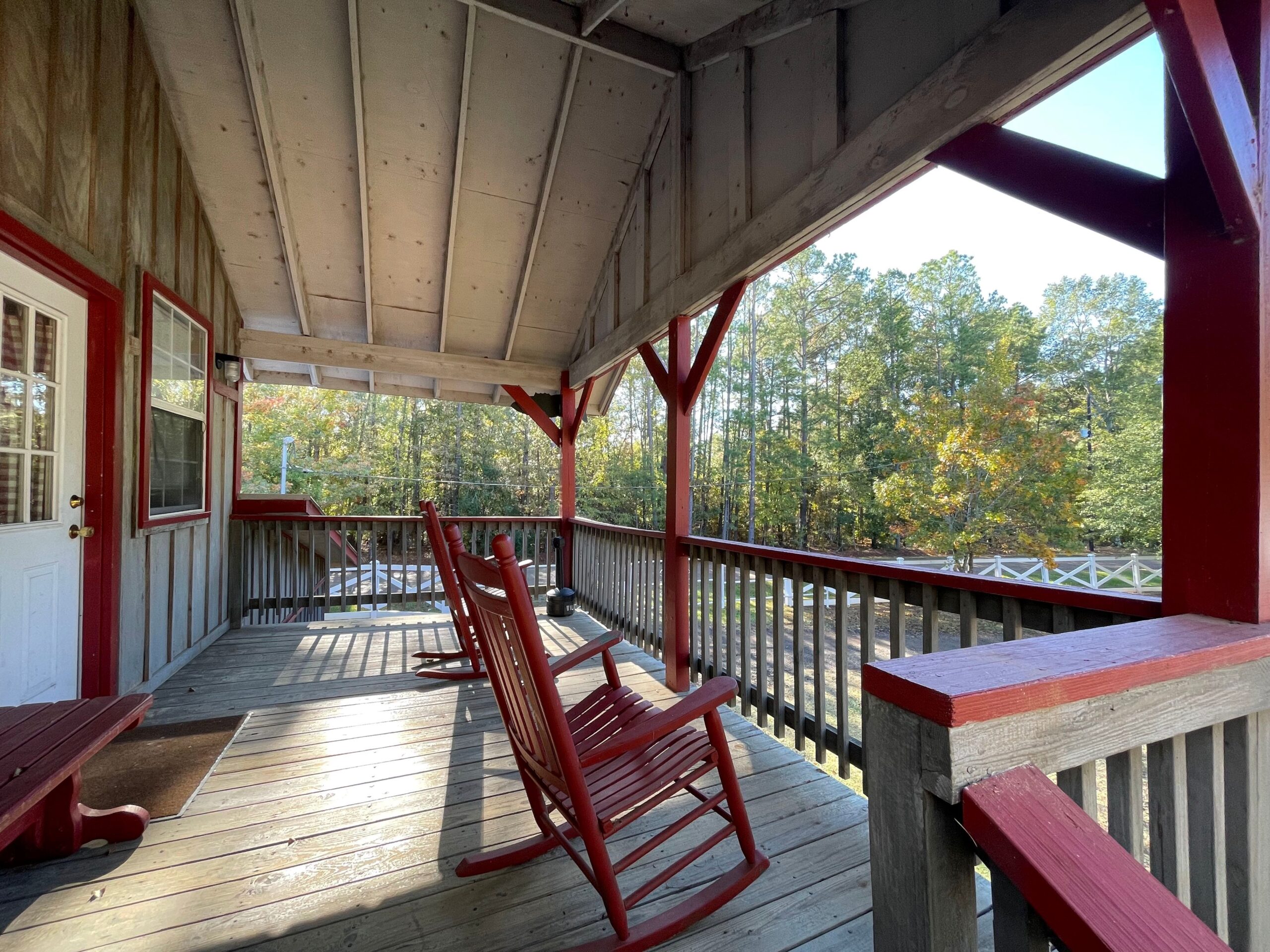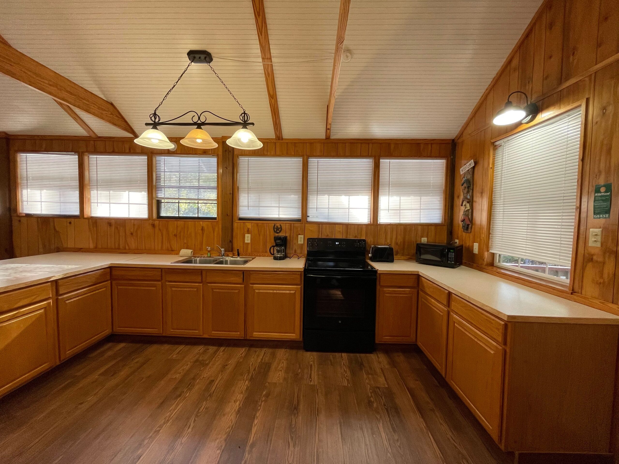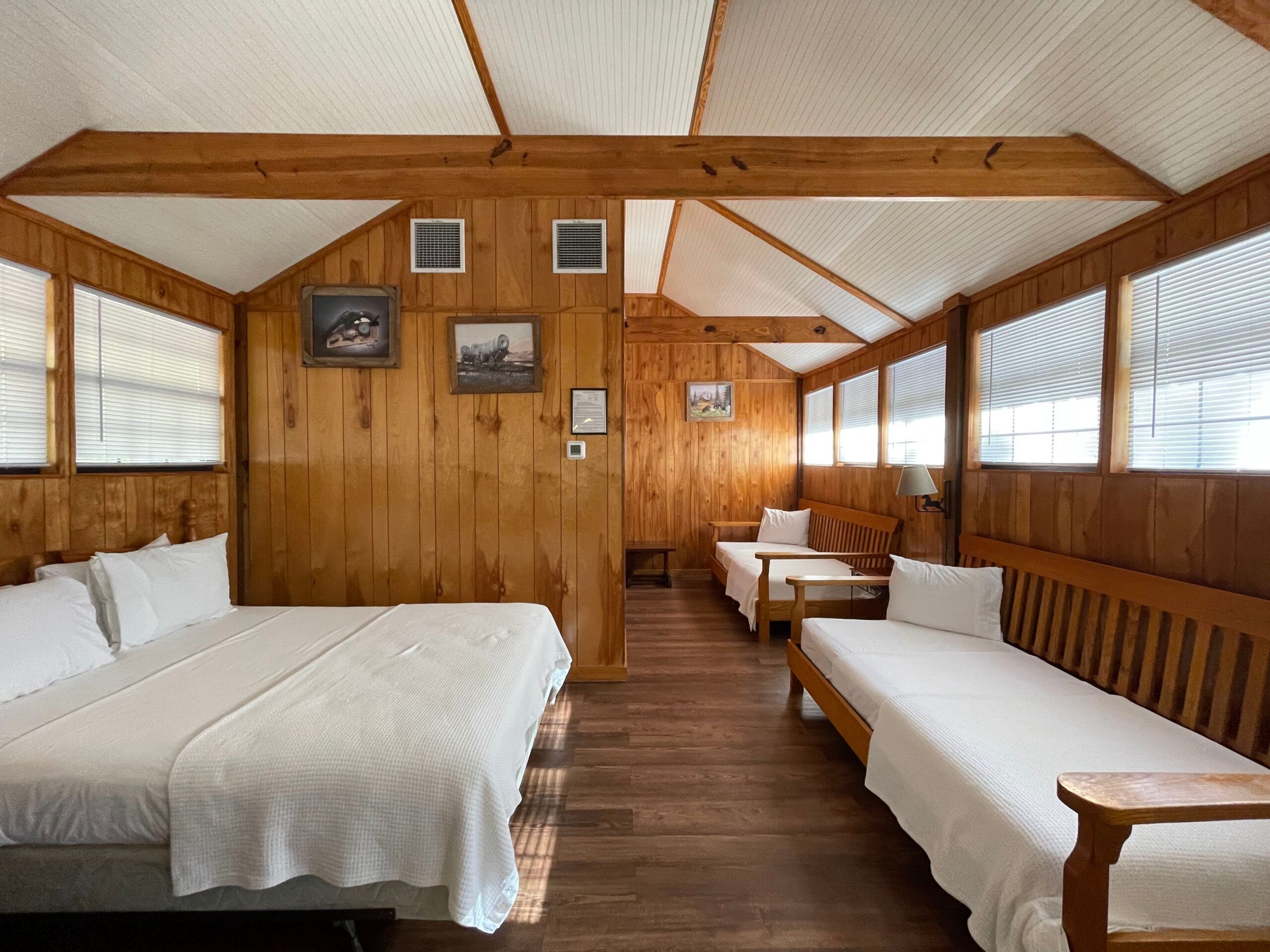 MAXIMUM OCCUPANCY: 4 Great View from Second Floor over Barn Open Sleeping Style with Two Single Size Daybeds & One Queen Size Bed, One Private Bathroom with Tub/Shower, Towels/Linens/Bath Tissue Provided, Fully Equipped Kitchen, Dining Area, Spacious Great Room with Sitting Area, Cable TV Complimentary Wi-Fi, Comfortable Rocking Chairs on the covered porch that overlooks a private wooded property with Wildlife Viewing, Outdoor BBQ Pit / Fire Pit / Picnic Table, Easy Parking This cabin is not ADA compliant. Wildwood Resort is complaint with our local, state, and federal laws. Size: 750 sq/ft
