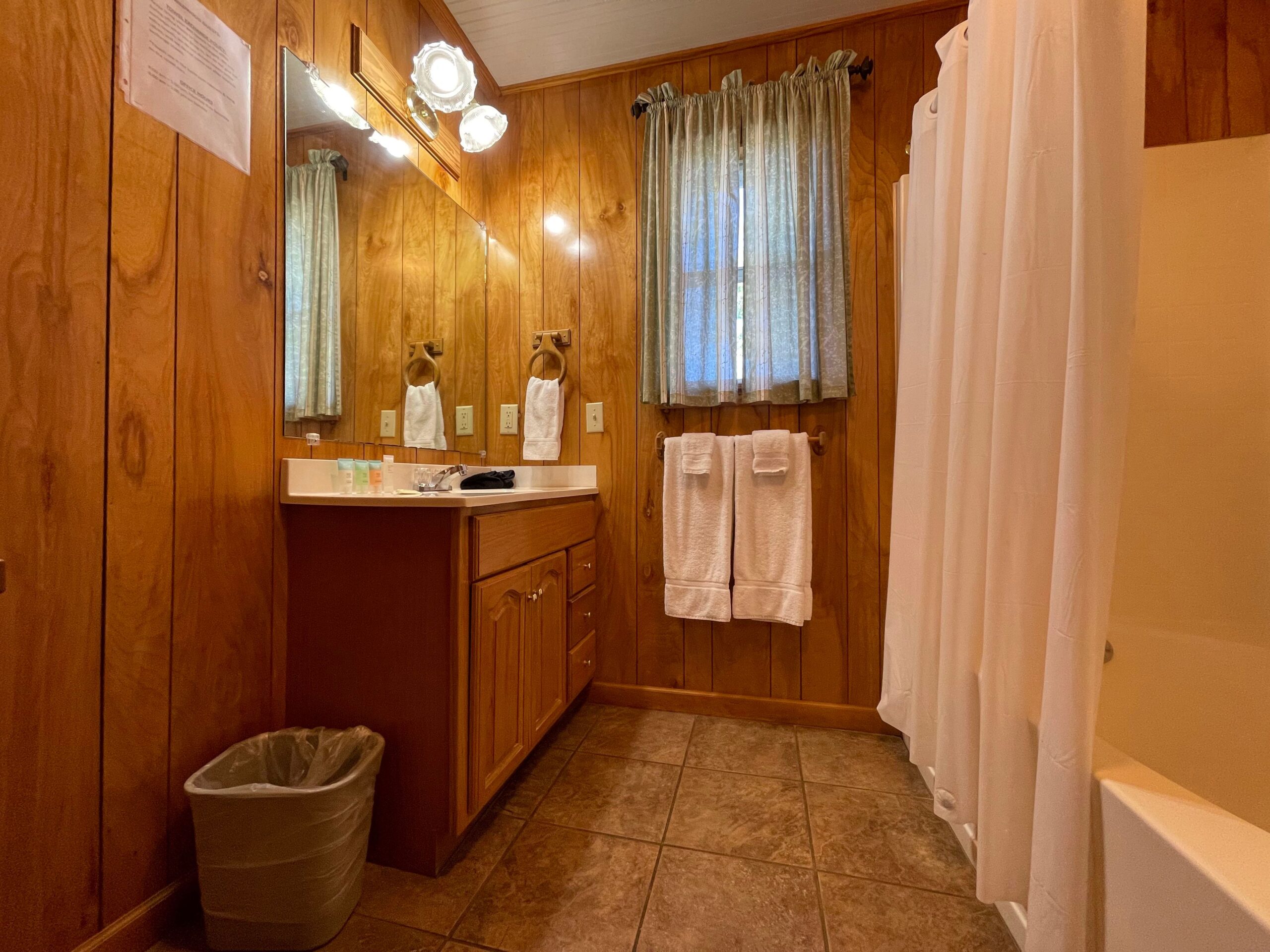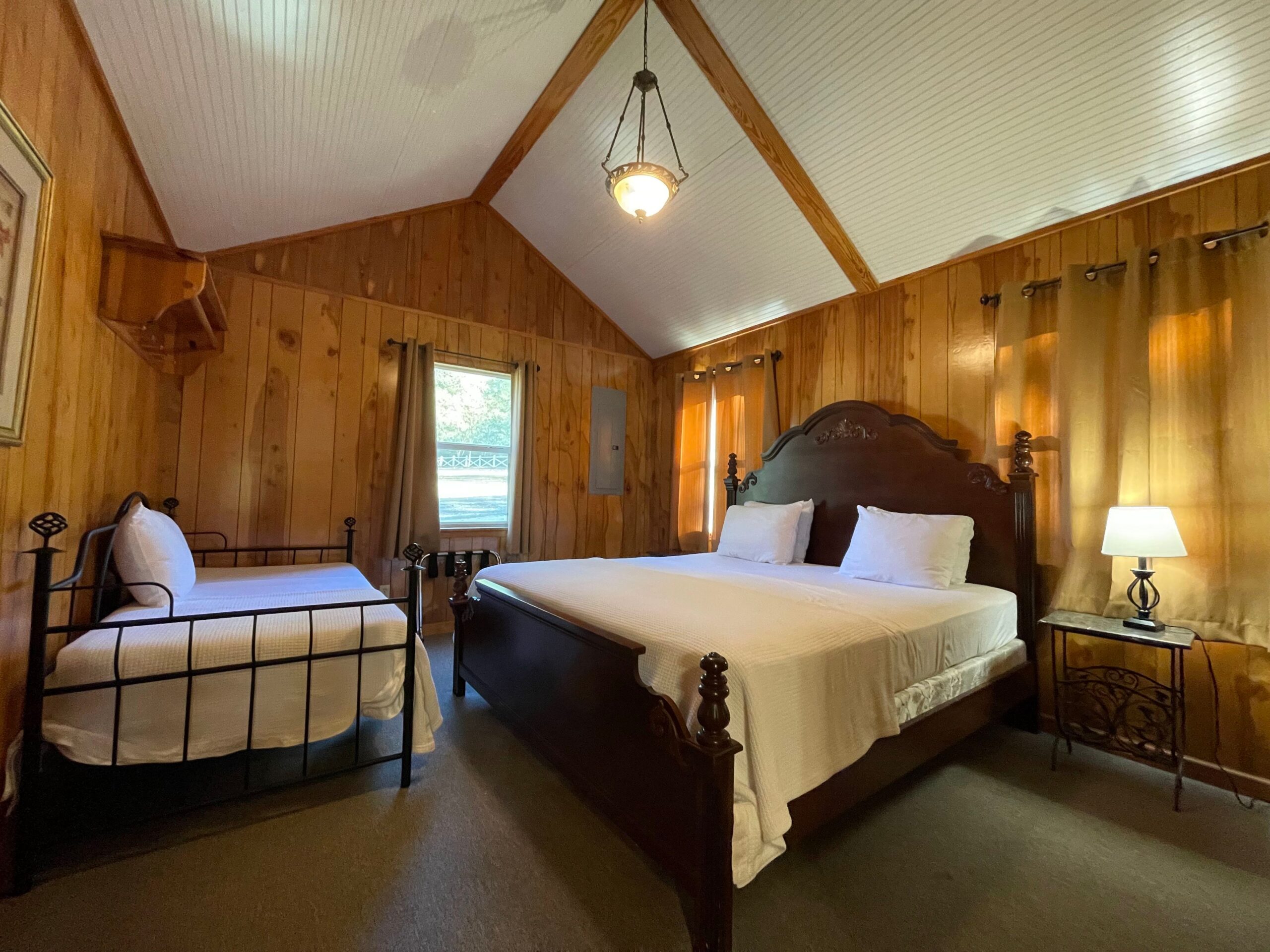 MAXIMUM OCCUPANCY: 6 Two Private Bedrooms with King Size Bed and Single Daybed in Each Bedroom Two Bathrooms with Tub/Showers Towels/Linens/Bath Tissue Provided, Fully Equipped Kitchen, Dining Area, Sitting Area, Wood Burning Fireplace, Vaulted Ceilings, Cable TV, Complimentary Wi-Fi, Comfortable Rocking Chairs on Covered Porch overlooking a private stocked pond, Outdoor BBQ Pit / Fire Pit / Picnic Table, Generous Parking This cabin is not ADA compliant. Wildwood Resort is complaint with our local, state, and federal laws. Size: 1,750 sq/ft