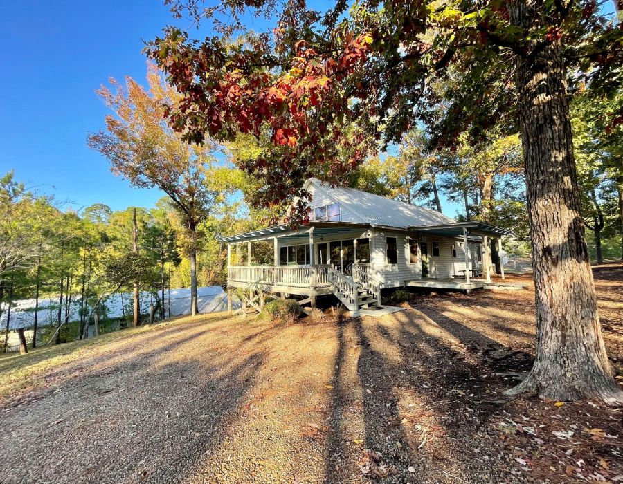3-Bedroom retreat with vaulted great room, full kitchen, and porch overlooking the lake and pier.